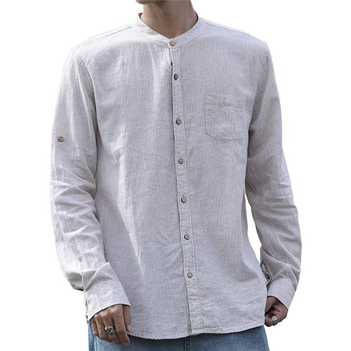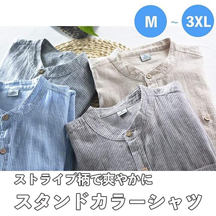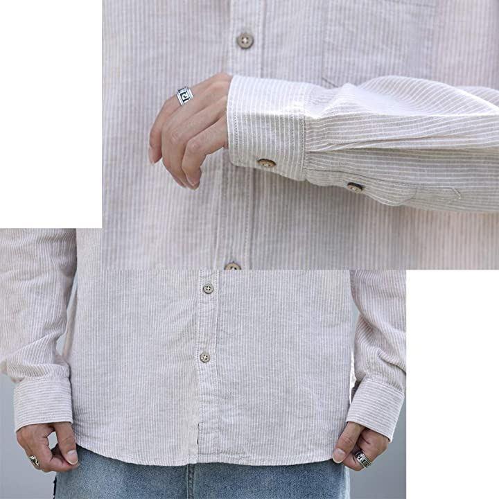 [ジェームズ・スクエア] スタンドカラー カジュアルシャツ リネン混 長袖 シャツ(ベージュ 3XL) |
