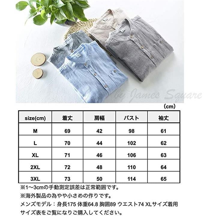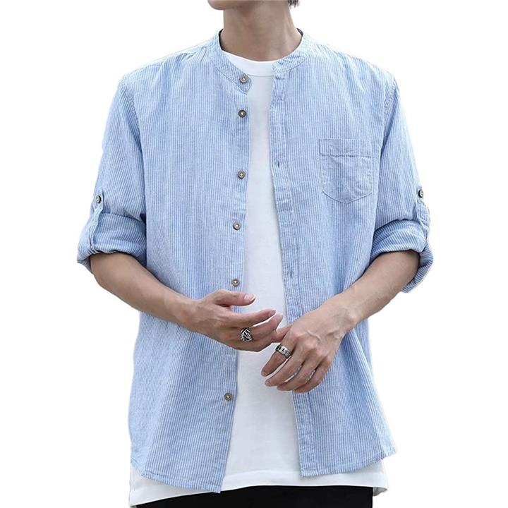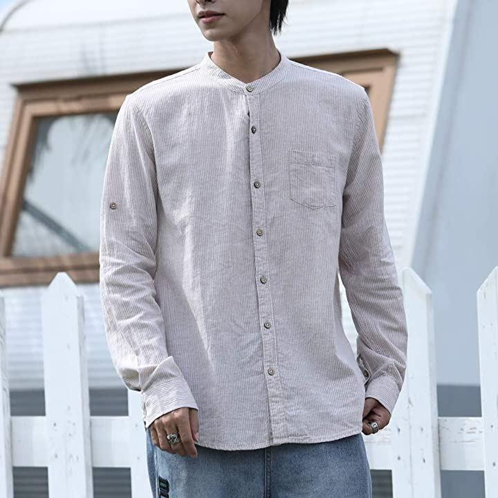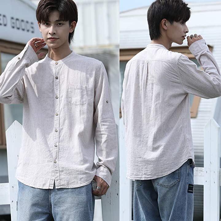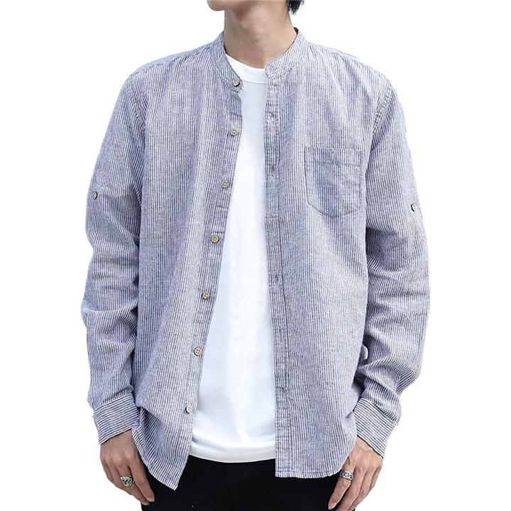 [ジェームズ・スクエア] スタンドカラー カジュアルシャツ リネン混 長袖 シャツ |