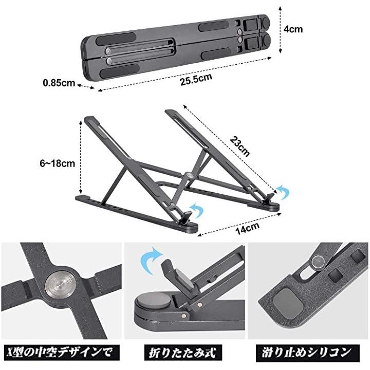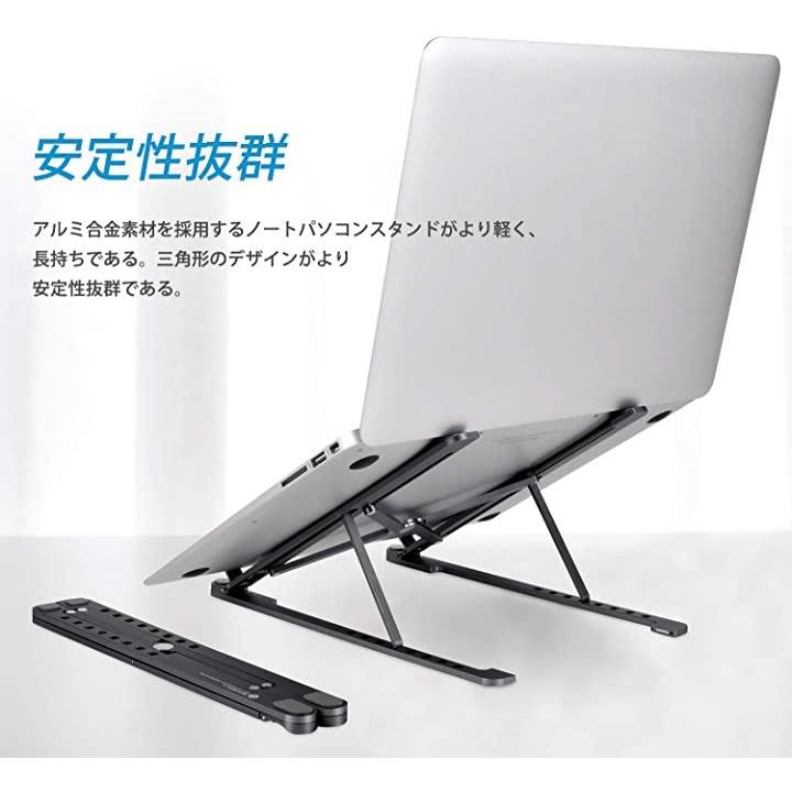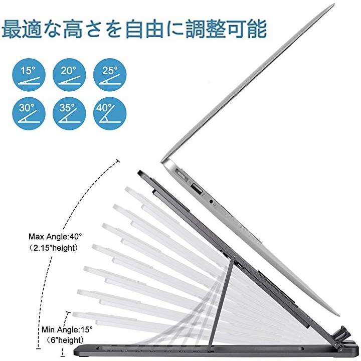 ノートパソコンスタンド 折りたたみ式 アルミ 8階段高さ調節 軽量 放熱 熱対策 オシャレ 持ち運び 荷重20KG Macbook Air/Macbook Pro/ipad/ノートパソコン/タブレット