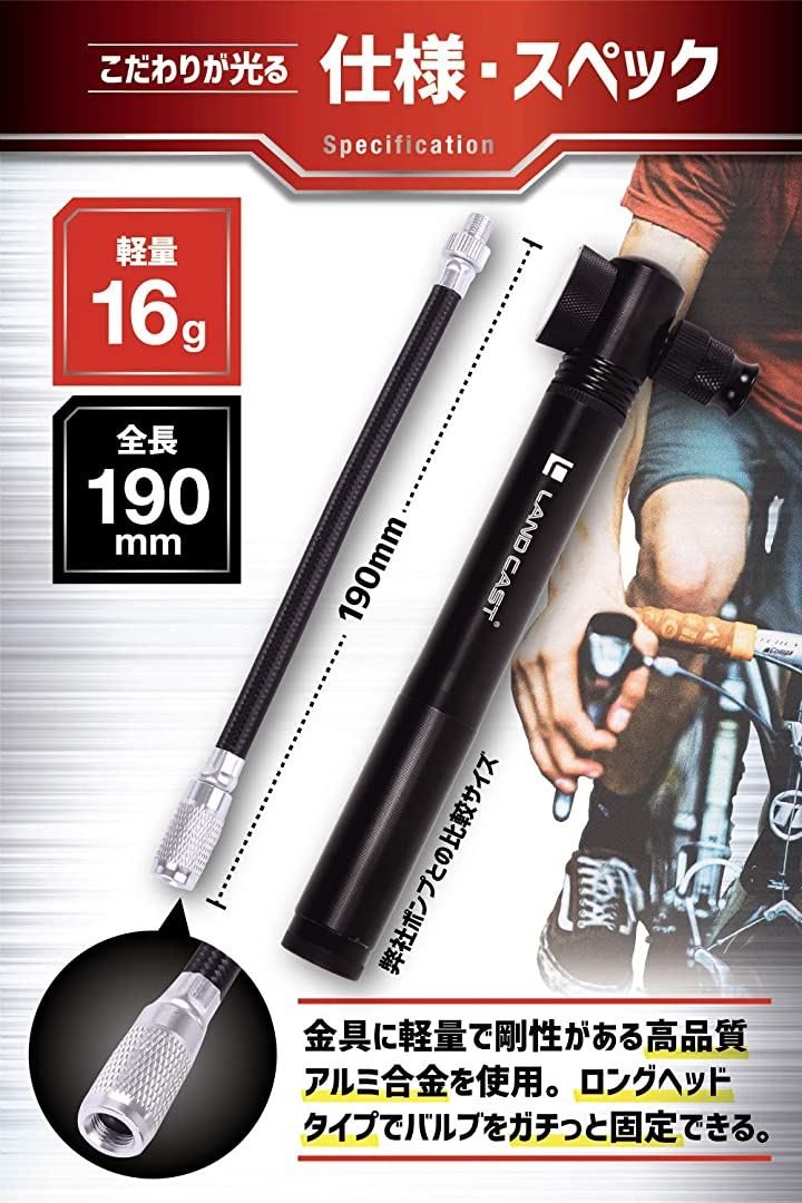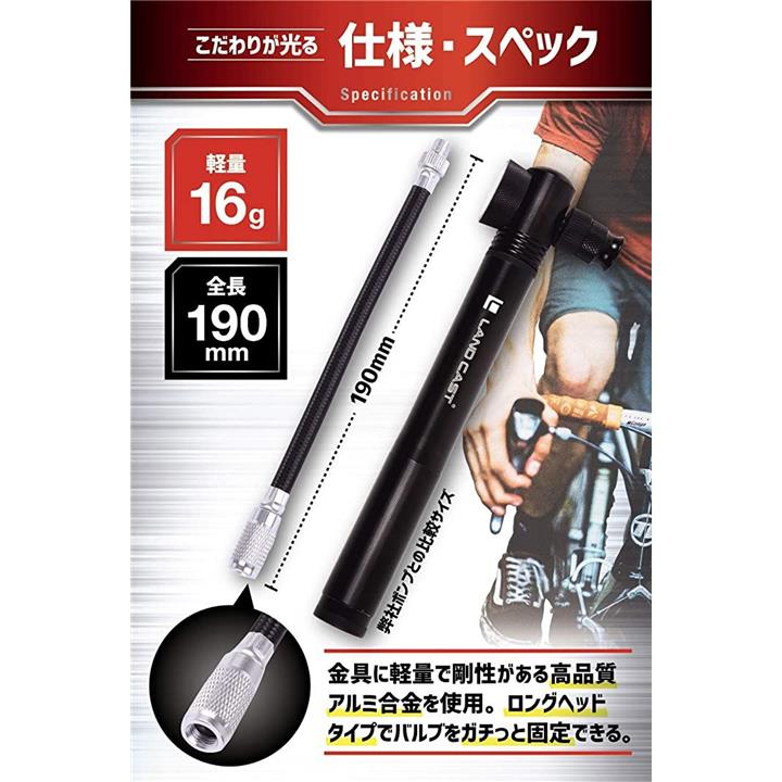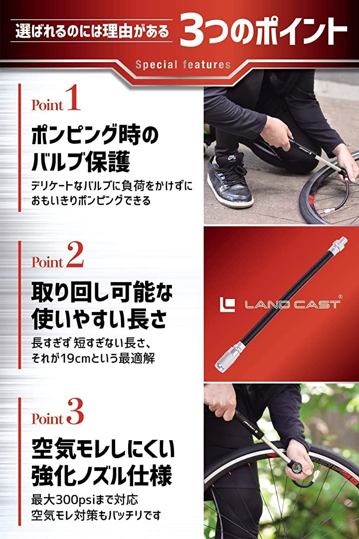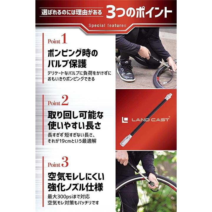 LANDCAST アシストチューブ 19cm ポンピングをラクにする 延長チューブ 米式ポンプ>仏式バルブ