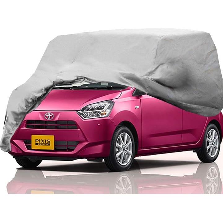 互換品車カバー SUV ボディーカバー カーカバー 不織布 4層構造 裏起毛 自動車 コンパクト 防水防塵防輻射紫外線 黄砂対策 445x180x145 CM グレー