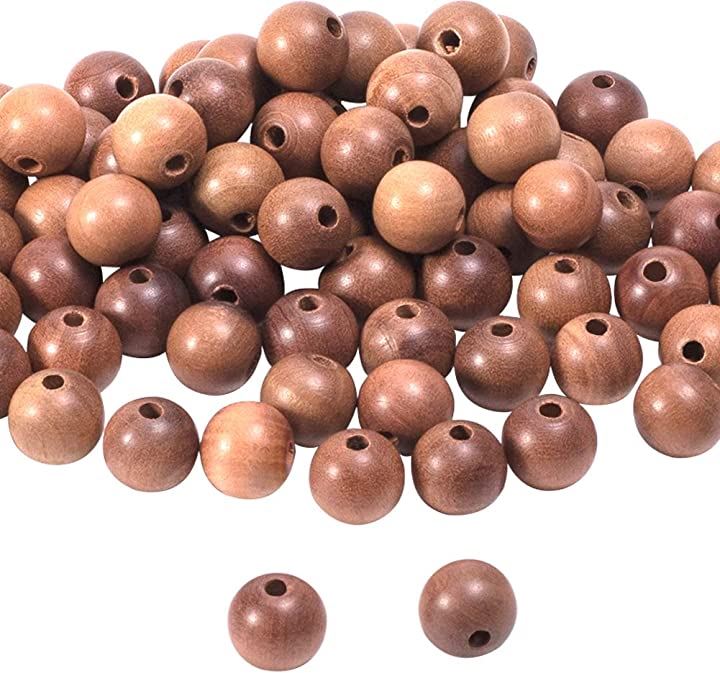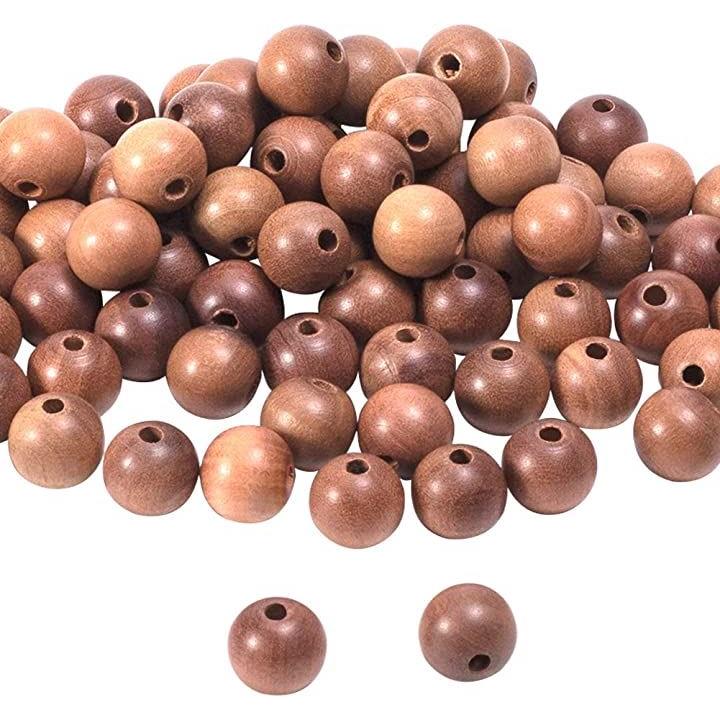ウッドビーズ 木製ビーズ 直径10mm 穴2mm ラウンドビーズ 可能 DIY用 手芸用品 ジュエリー用 約100個/箱 アクセサリーパーツ サドルブラウン