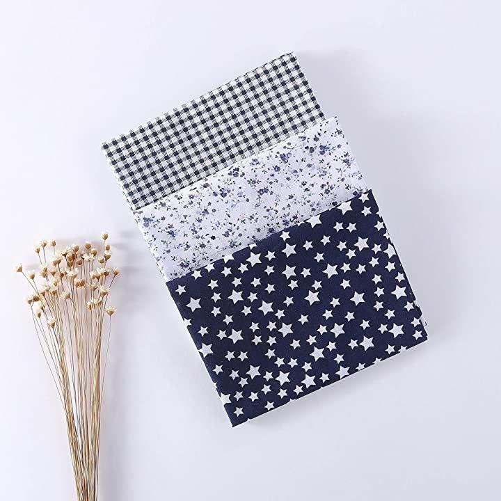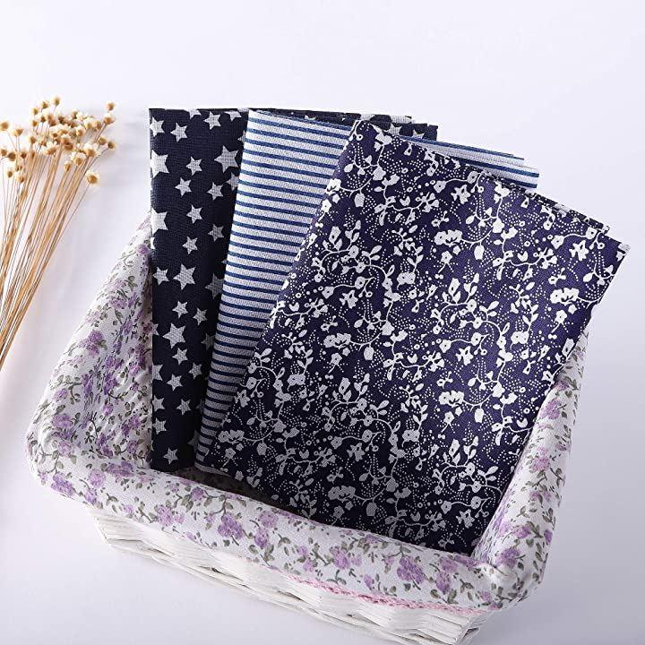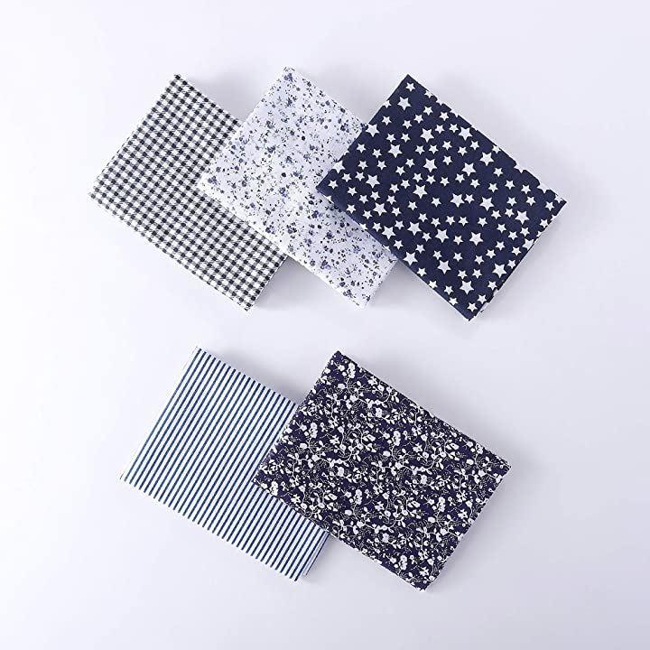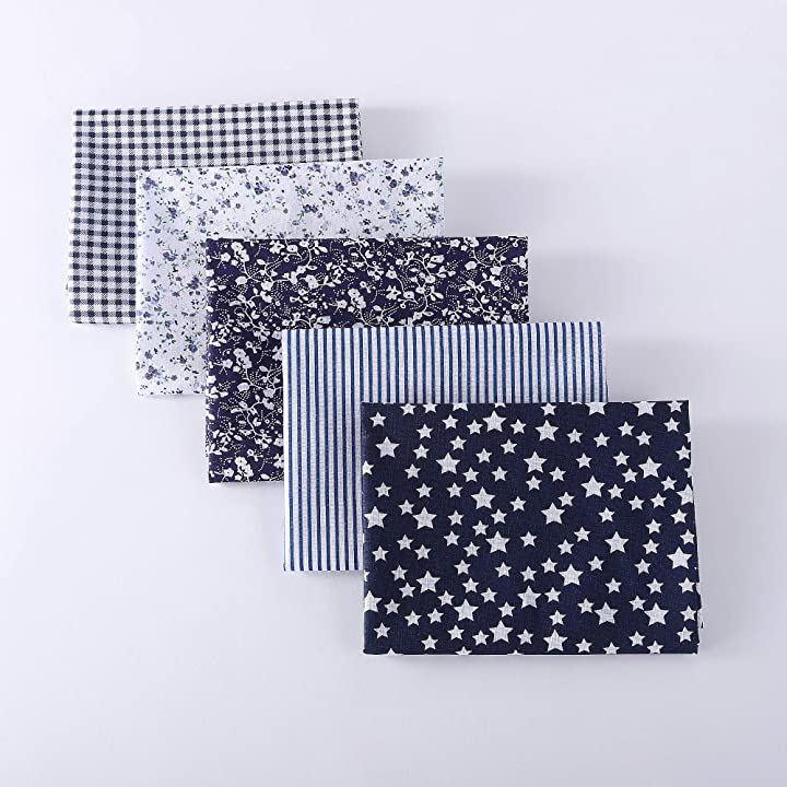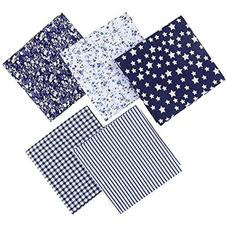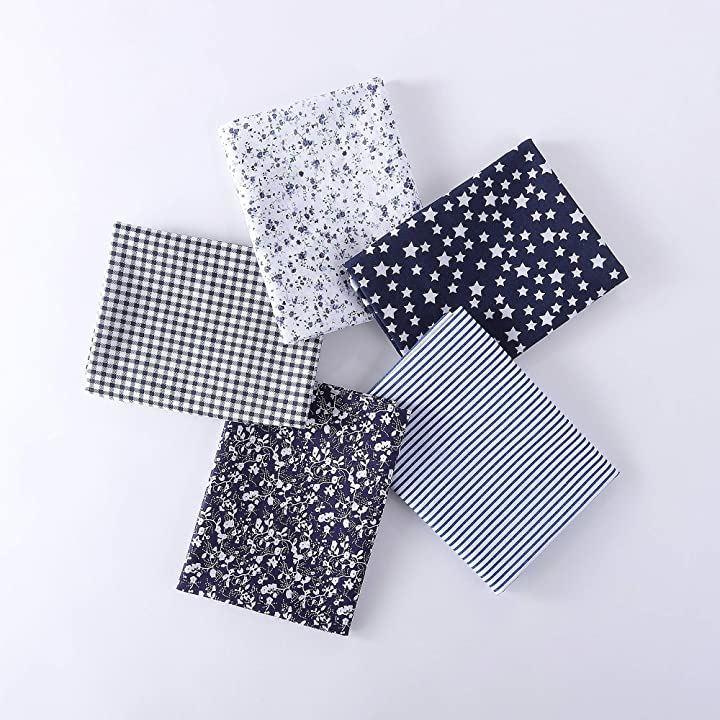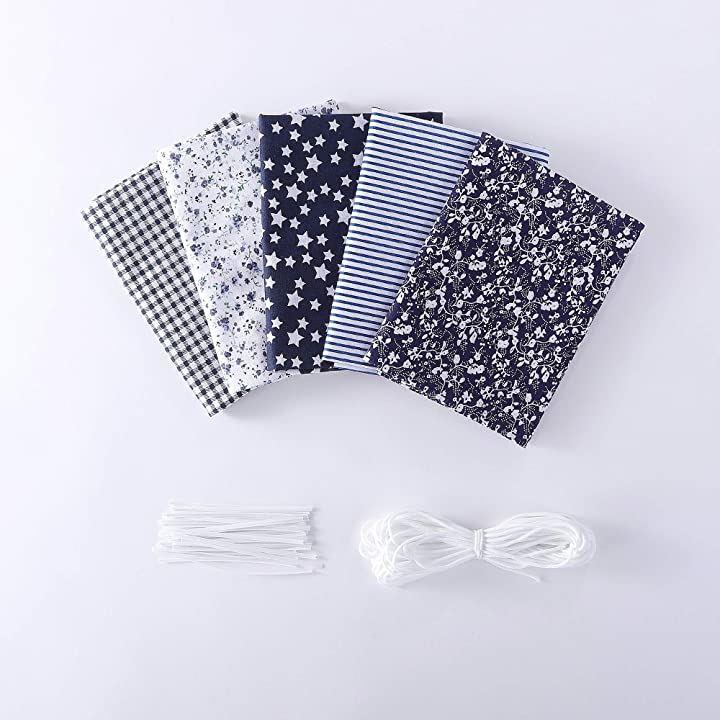 布 綿生地 洗える 50cmx50cm 丸ゴム10m付き パッチワーク布 カットクロス 5枚 7枚 8枚 選べるセット ブルー5枚