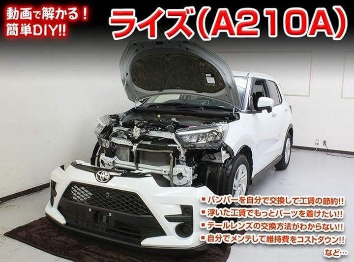 ・ルームランプ交換方法、ライト交換方法・ フロント(リア)バンパー交換方法・内張り交換方法などなど、ライズ A210A の 各種パーツの取外し方法や取付け方法、改造やチューニングを解説したDVD。