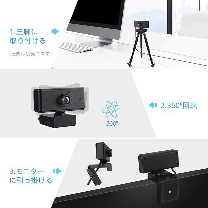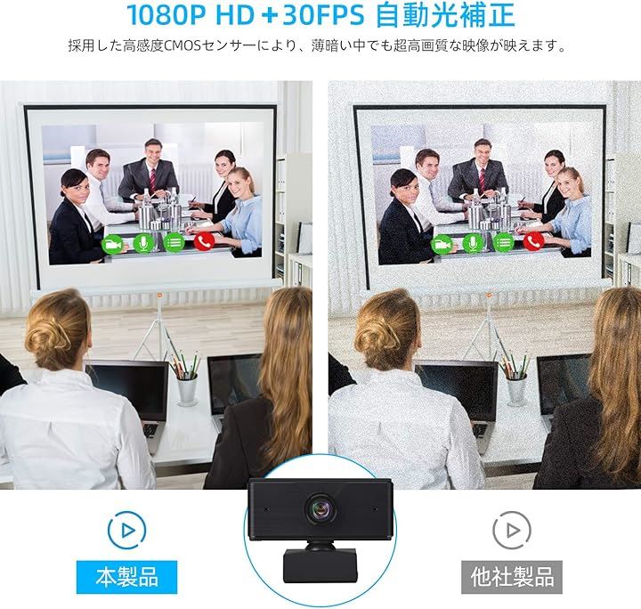 互換品 ウェブカメラ Webカメラ マイク内蔵 オートフォーカス 1080P フルHD 200万画素 75°画角 自動光補正 360°調整可能 会議用 オンライン会議 広角 USB 小型 会議用/在宅勤務/動画配信/ゲーム実況/ビデオ/ビデオ会議/ネット授業