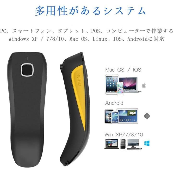 C750バーコードスキャナー 2次元 Bluetoothワイヤレス1D 2D QRミニUSBバーコードリーダー プリントデジタルスキャナー ポータブル PCラップトップ スマートフォン Android タブレット
