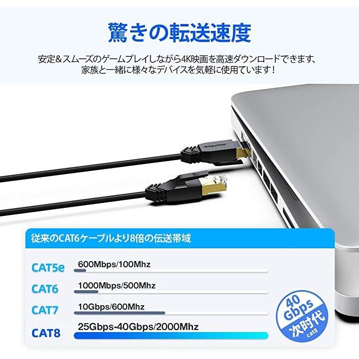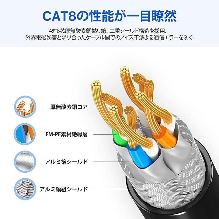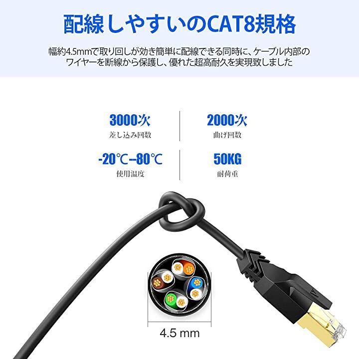 互換品LANケーブル 互換品 cat8規格 スリムタイプ カテゴリ8 40Gbps 通信 伝送帯域2000MHz ゴールドメッキ