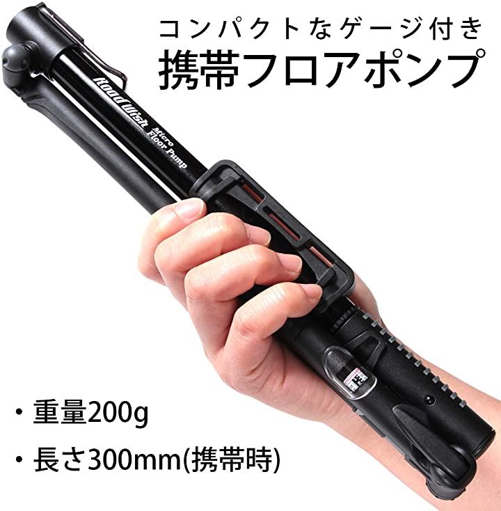 重量200gで、携帯時は長さ30cmですのでいつもバッグに入れておけば、サイクリング、ロングライドのイザという時のパンク修理にも便利です。