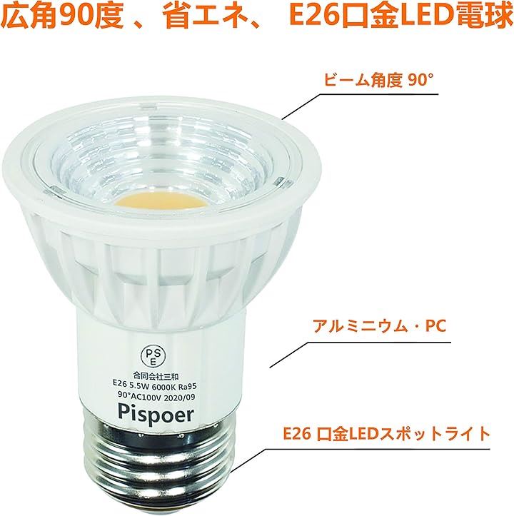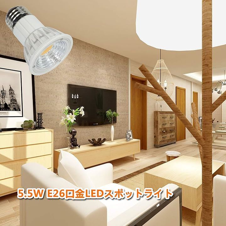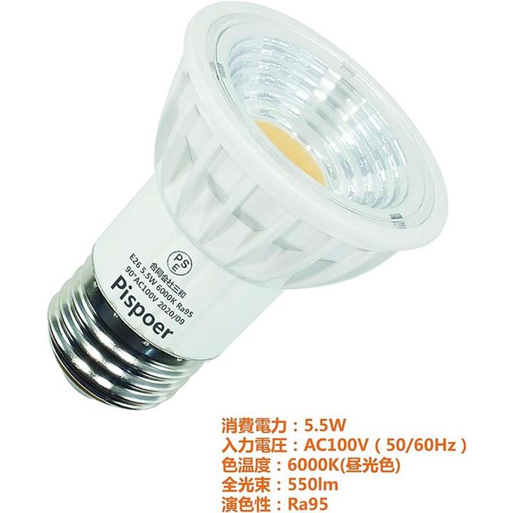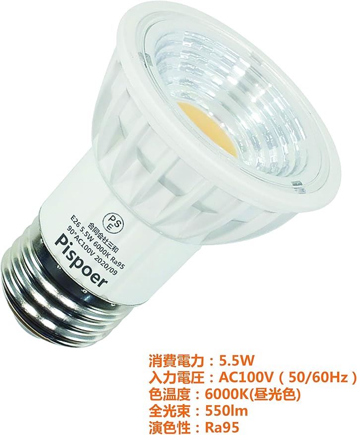 LEDスポットライト E26 口金 LED電球 ビームランプ 5.5W ハロゲン電球50-60W相当 高演色RA95 550LM 非調光 ビーム角90度 PAR20 ダクトレール用LEDスポットライト