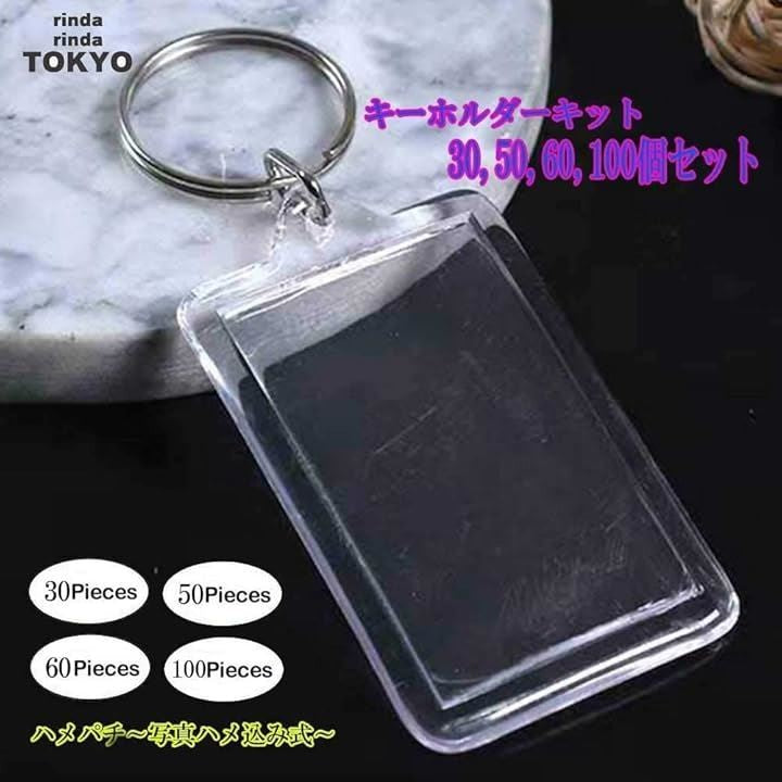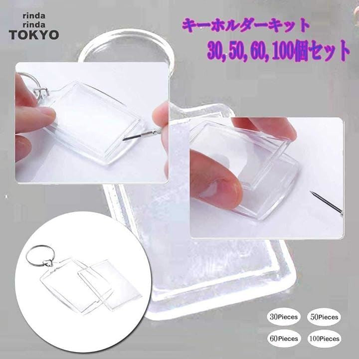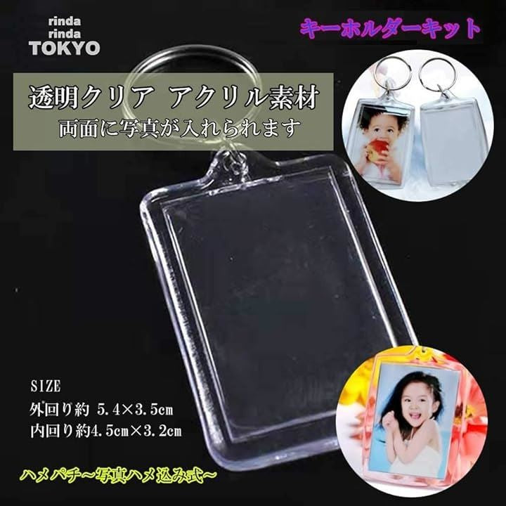 rinda キーホルダー 写真 入れ 長方形 アクリル フォト フレーム ハンドメイド 手作り パーツ ハメパチ 作成キット