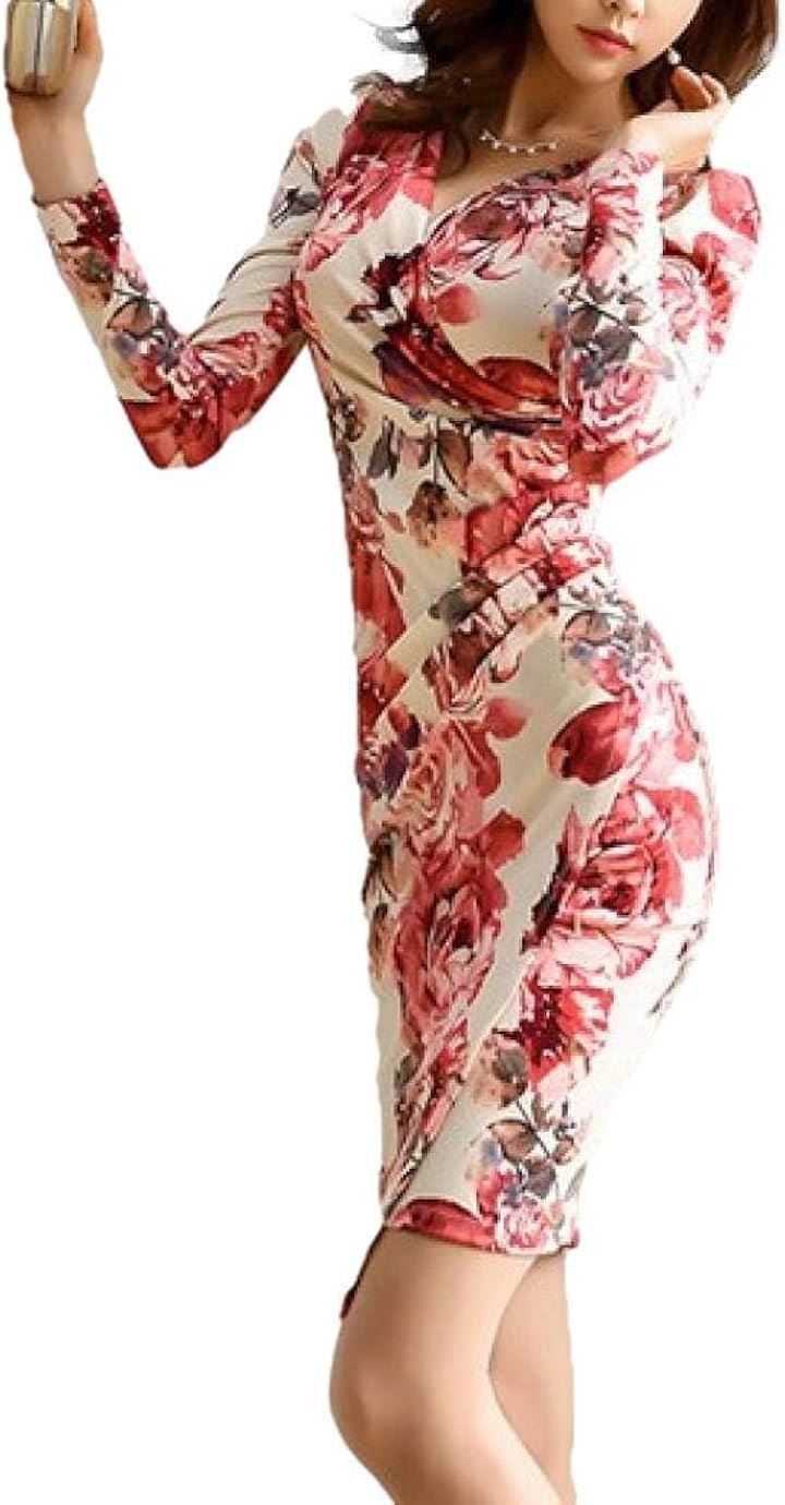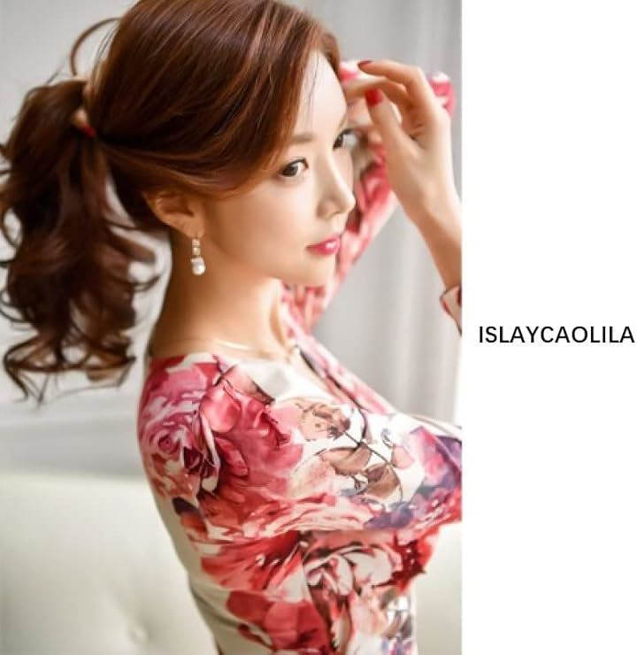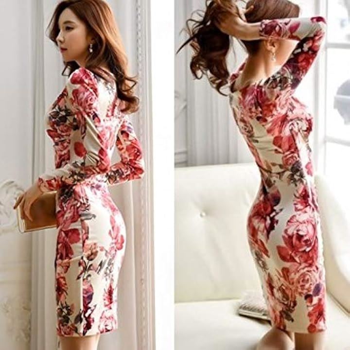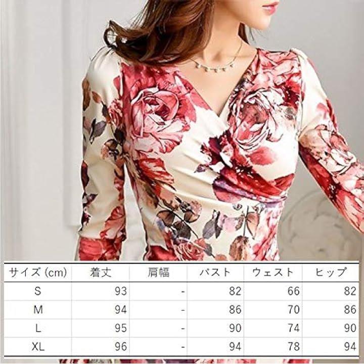 キャバドレス ミニドレス クラブドレス パーティードレス ワンピース タイト ミディ 花柄 カシュクール プリント Vネック 長袖 ハイウエスト アシンメトリー