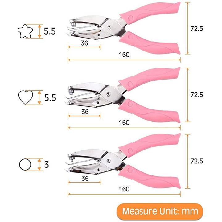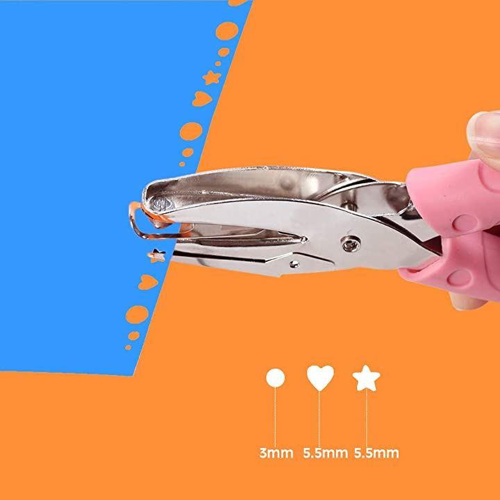 ペーパーパンチ 穴開けパンチ ハンドパンチ 3点セット 丸 3mm 星 ハート デコレーション ピアス台紙用 ノート 問題集 デザイン 文房具 文具 子供 整理 事務用品