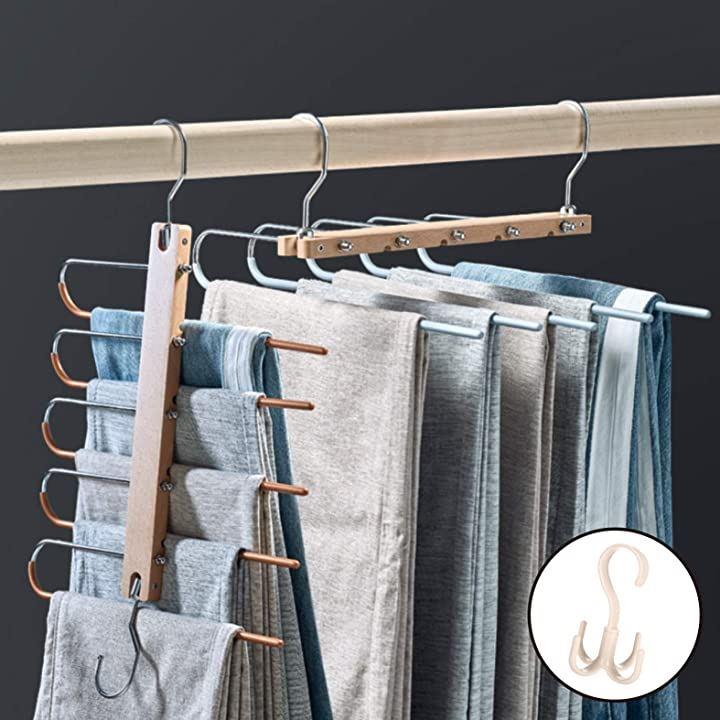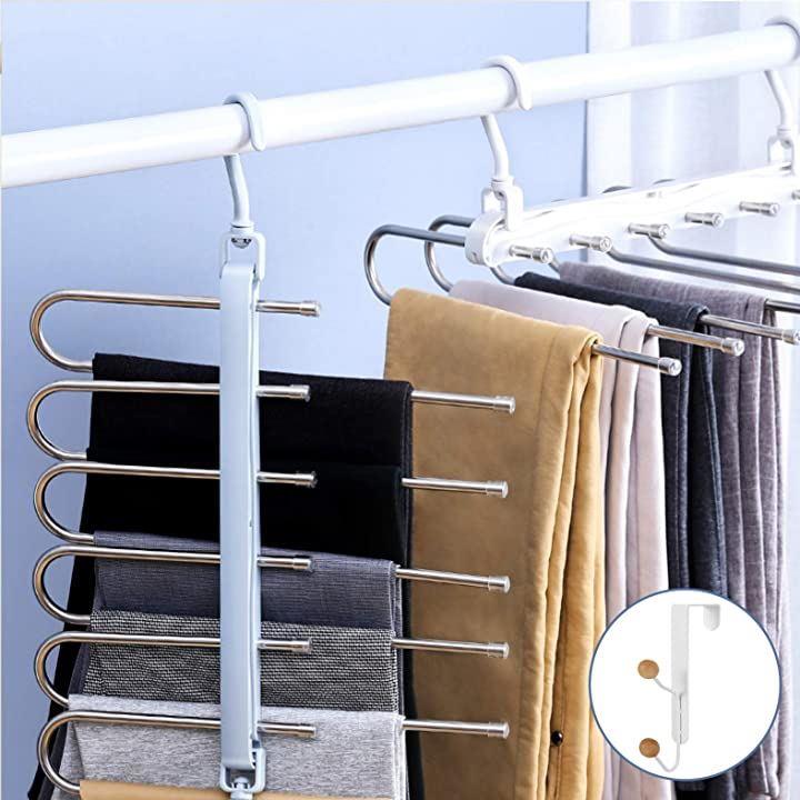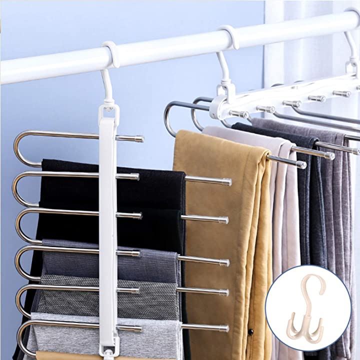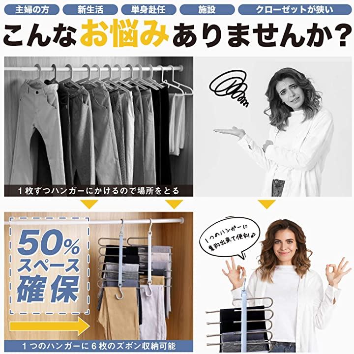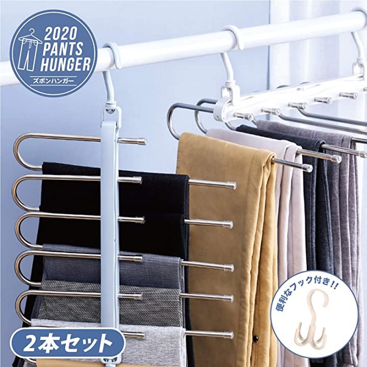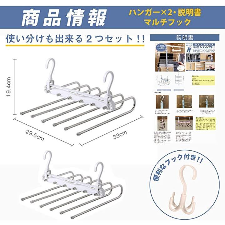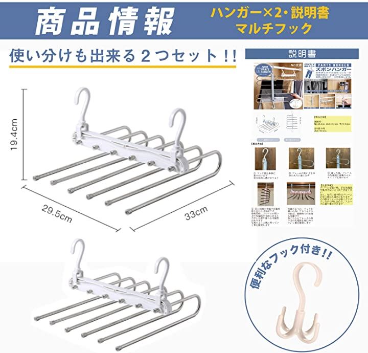 New model ハンガー ズボンハンガー パンツハンガー スラックスハンガー ベルトハンガー 2本セット マルチフック付き 説明書付き 新モデル/ホワイト 2本+マルチフック