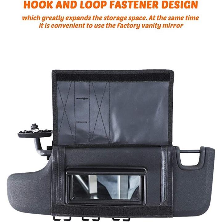 互換品 タクティカルサンバイザーオーガナイザー フロントバイザーストレージカバー 2007-2023 Jeep Wrangler JK JL & Gladiator JT インテリアストレージアクセサリー ブラック 1個