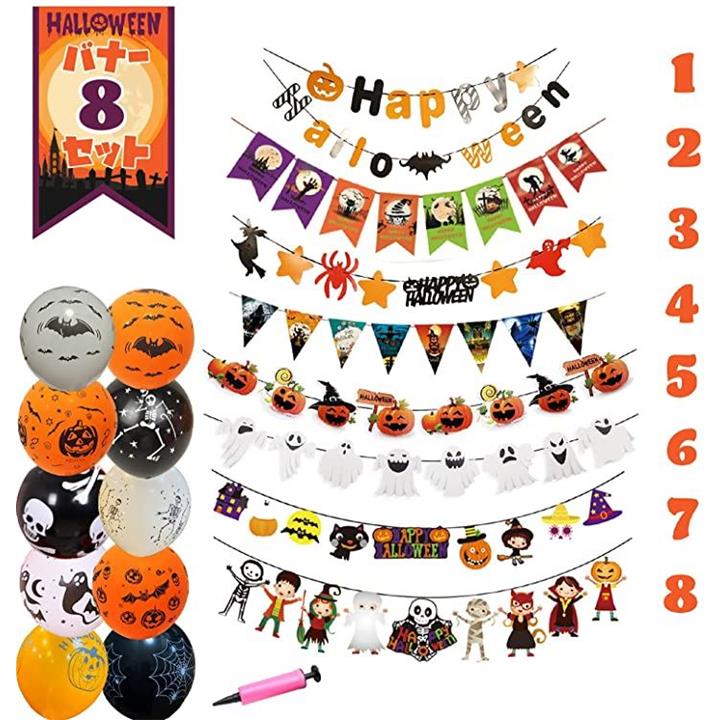 8種類セット+バルーン ハロウィン 飾り付け 装飾 ガーランド デコレーション