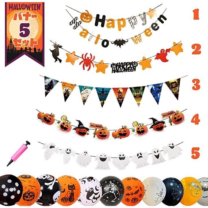 5種類セット+バルーン ハロウィン 飾り付け 装飾 ガーランド デコレーション