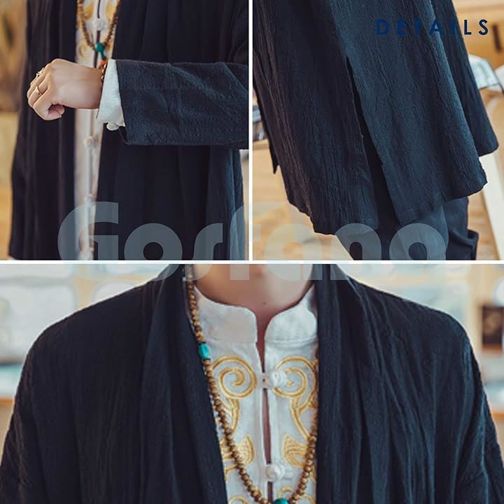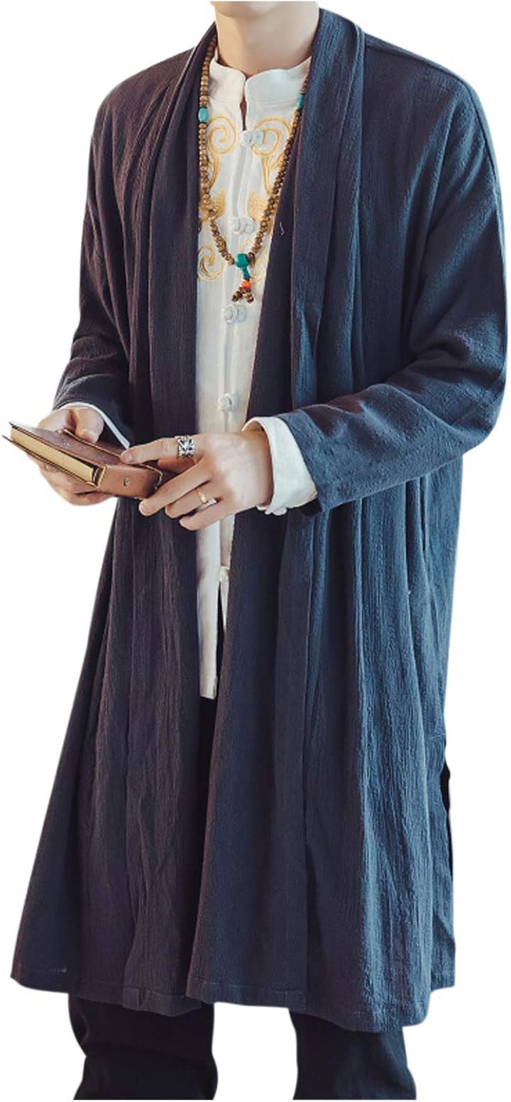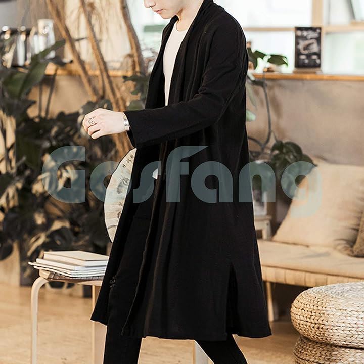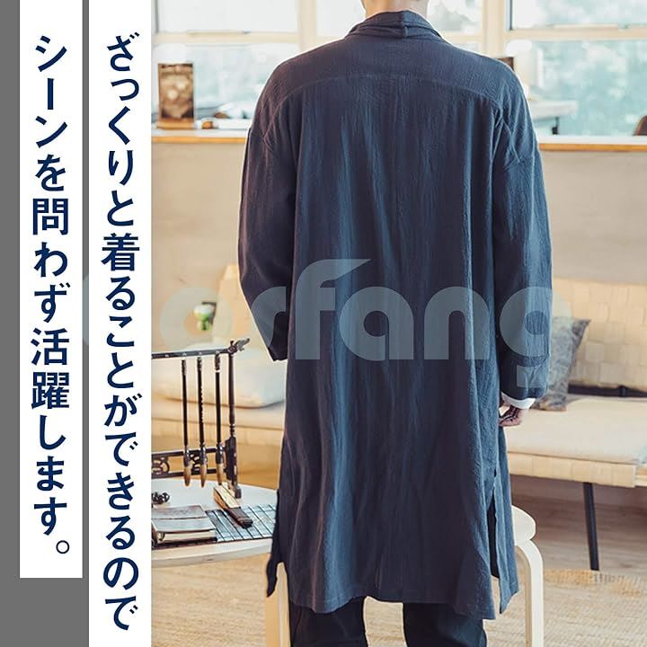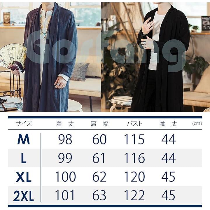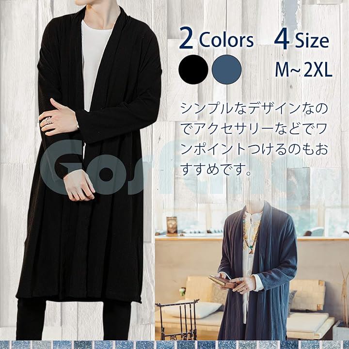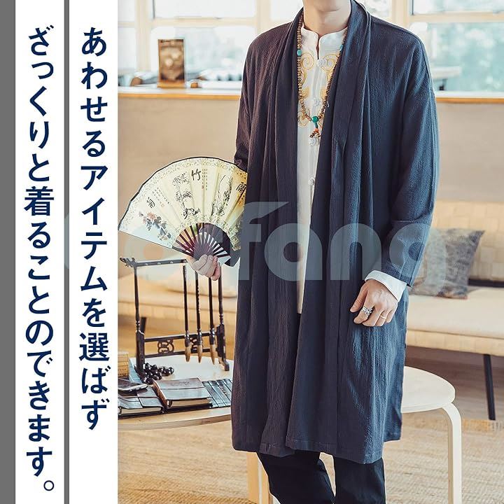ロングカーディガン コーディガン ジャケット ガウン 襟なし 無地 長袖 薄手 軽量 羽織 和風 メンズ
