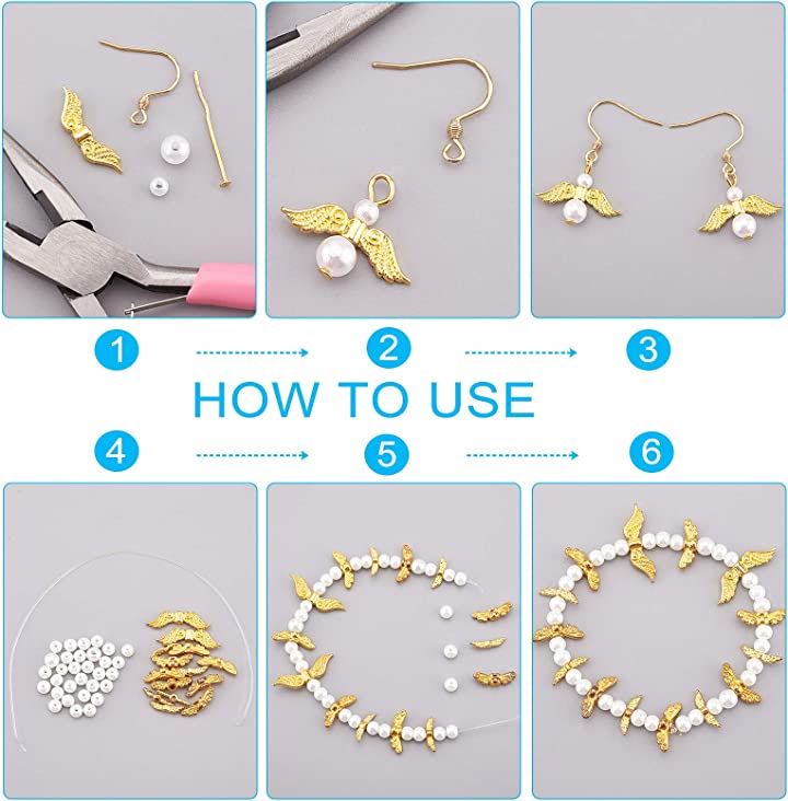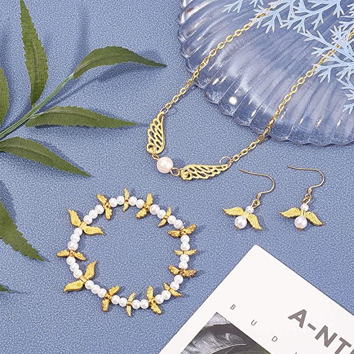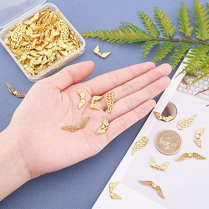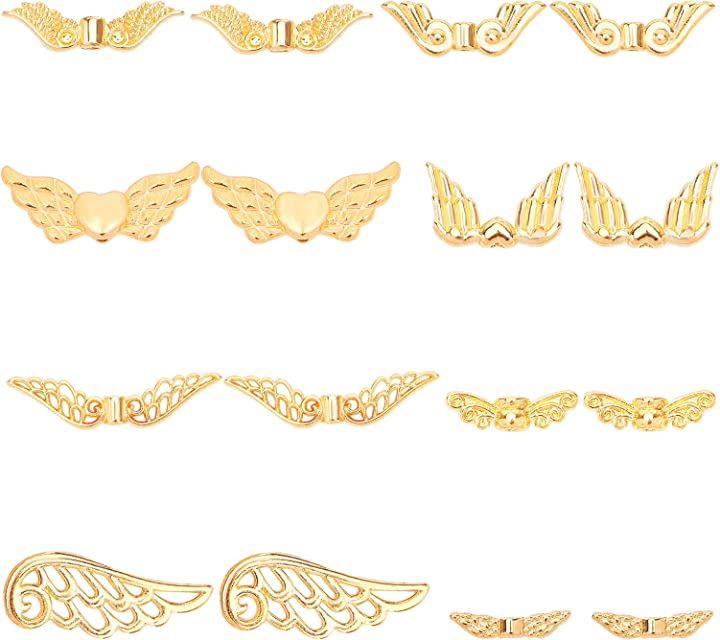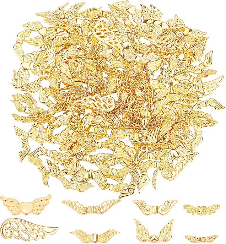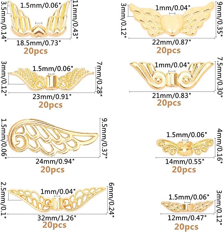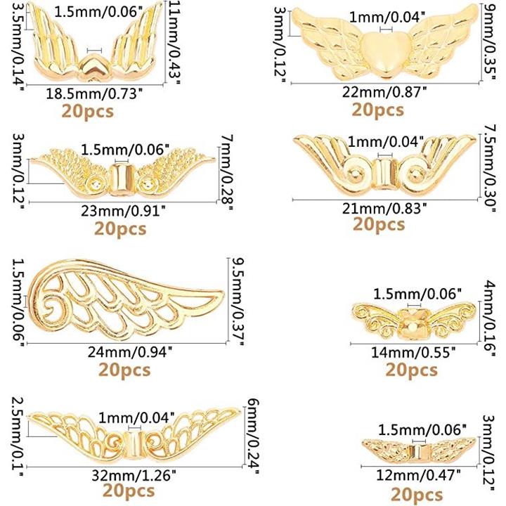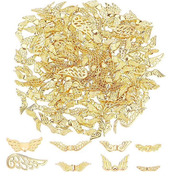 天使の羽 160個 8種 スペーサービーズ 翼柄 金古美 チャーム 金具 ジュエリー用