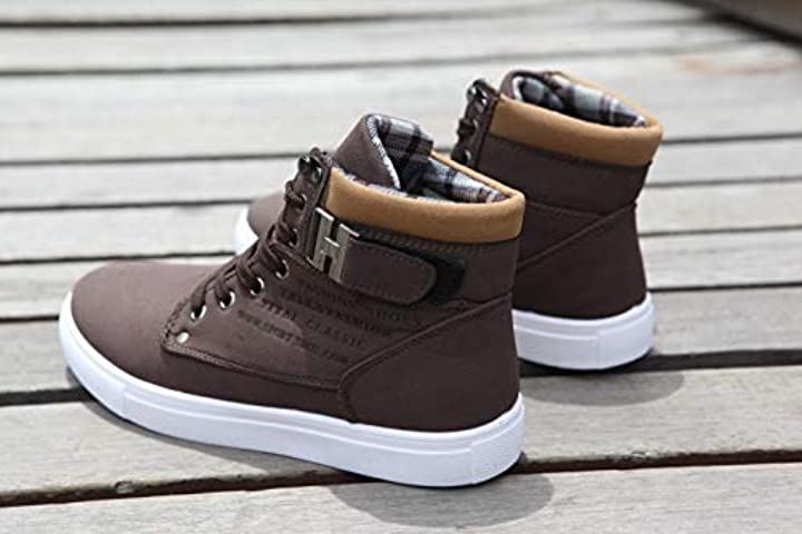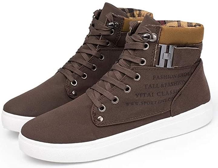 [エンプティオ] 厚底 ハイカット スニーカー 滑り止め シューズ チェック (25.5) ブラウン |