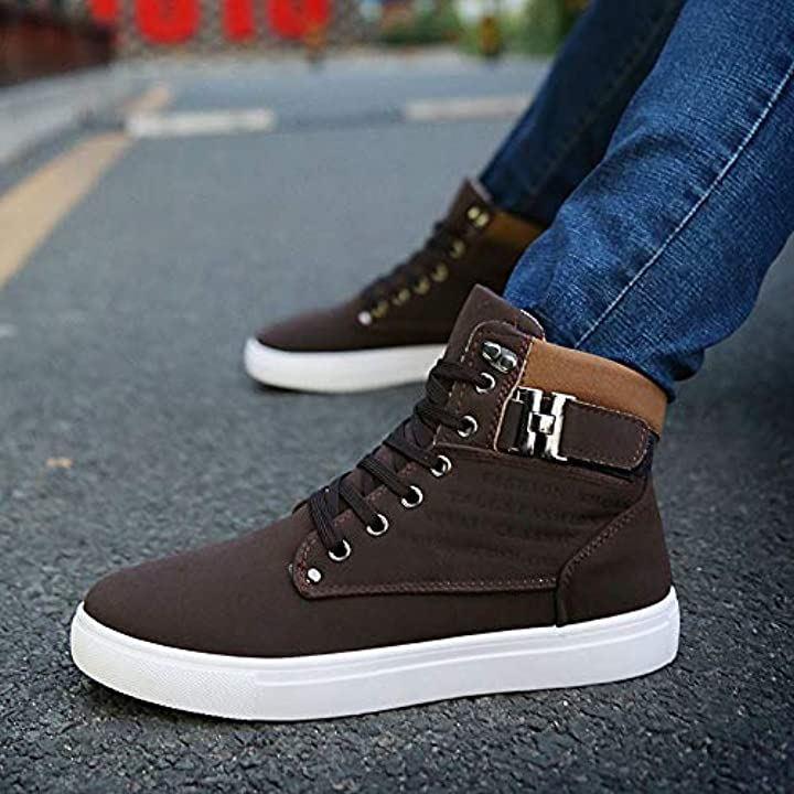 ・*しっかりとした生地の厚底タイプのスニーカー**衝撃を吸収してくれるPVCソールでクッション性に優れ、疲れにくく快適な履き心地のカジュアルシューズ**軽量で滑りにくいデザインで、ハイカットデザインながらも履き心地の良い一足です**タウンユースで気軽なスタイルを楽しんで*