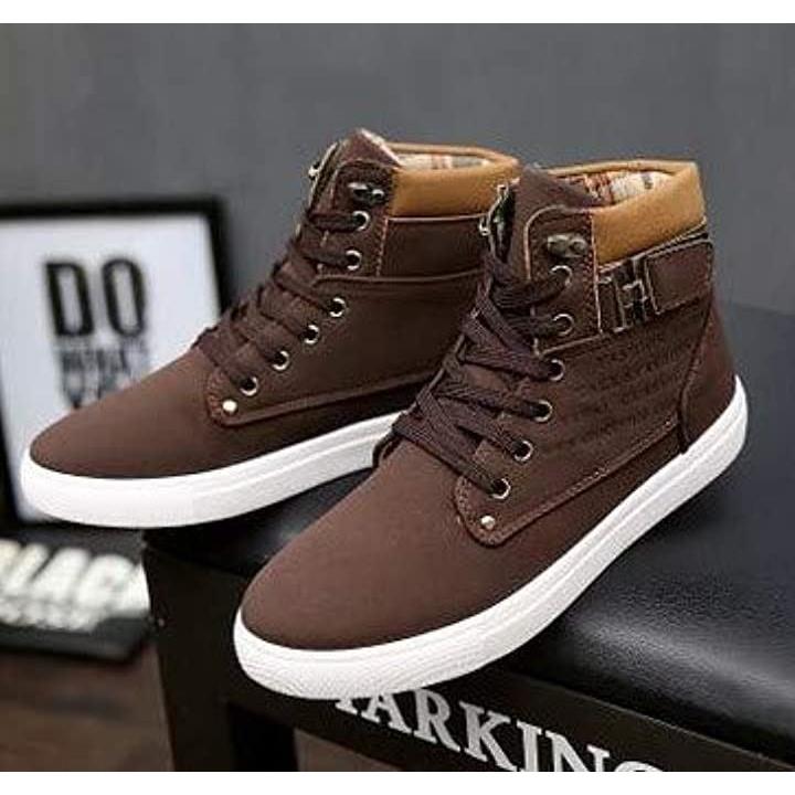 [エンプティオ] 厚底 ハイカット スニーカー 軽量 滑り止め すべりにくい すべらない シューズ クッション クッション性 はいカット はいかっと (25.0) ブラウン |