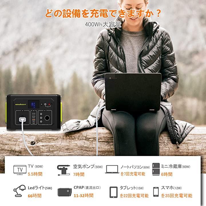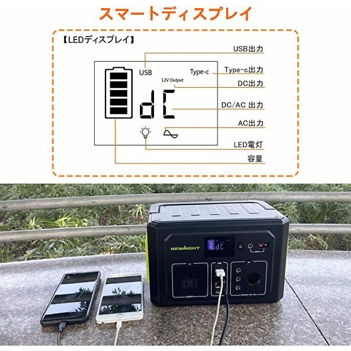 ・「大容量のリチウム電池400Wh」Newmight ポータブル電源は同じ蓄電池と比べて、更に大きな電力容量(109200mAh/400Wh)を持っています。