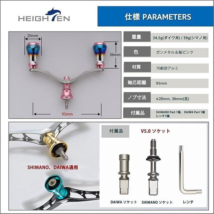 HEIGHTEN V2.0 95mm リール ハンドル 20mm ハンドルノブ 搭載 シマノ ダイワ 通用 スピニングリール用 Aurora Series |