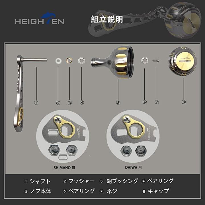 「互換品」HEIGHTEN 可変 70航空アルミ製 パワー リール ハンドル 汎用社外品ベイトリール用 (60mm/70mm 可変, ゴールド/シルバー) |