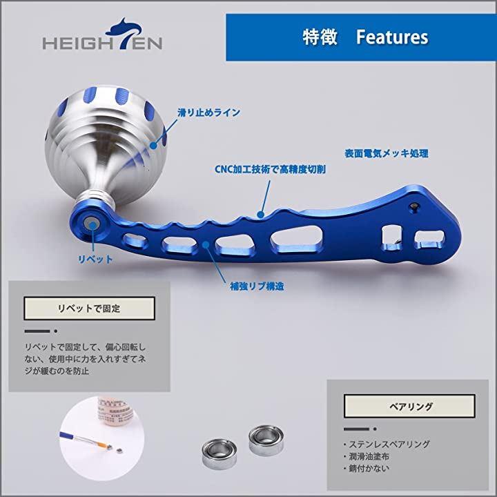 「互換品」HEIGHTEN 可変 70航空アルミ製 パワー リール ハンドル 汎用社外品ベイトリール用 (80mm/90mm 可変, シルバー/ブルー) |