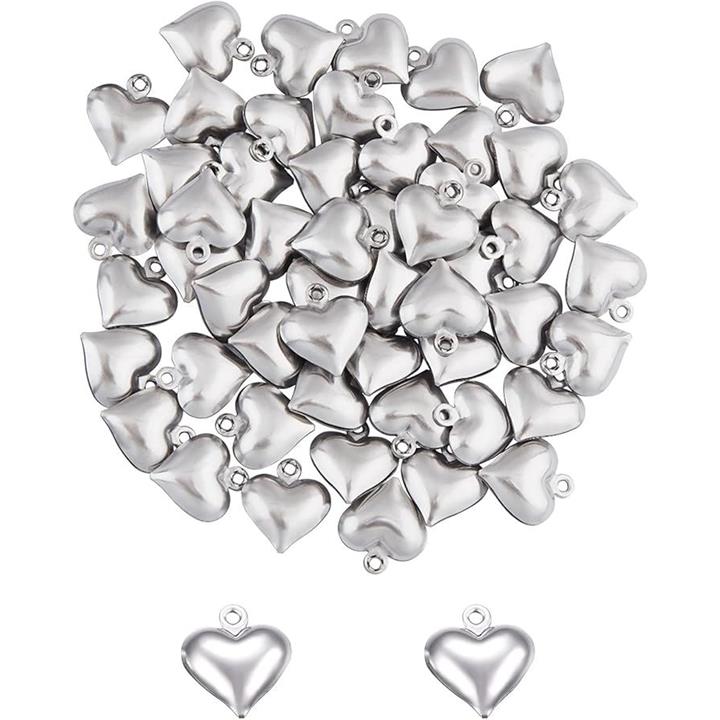 約100個 2色 6mm ハート チャーム 304ステンレス製チャーム 穴径1mm