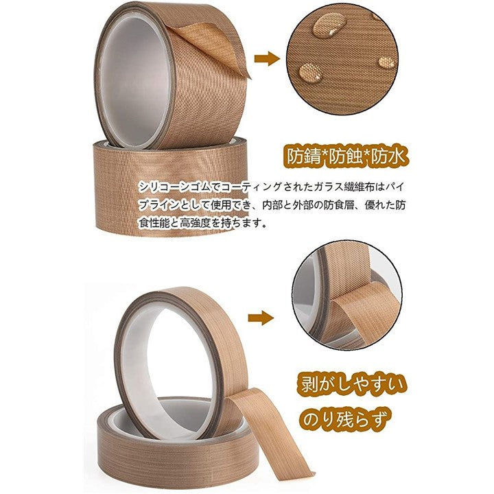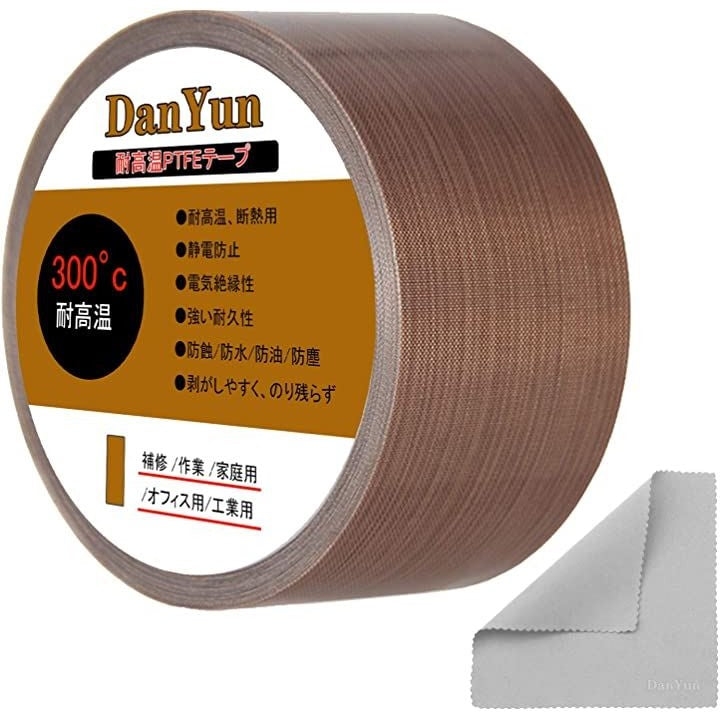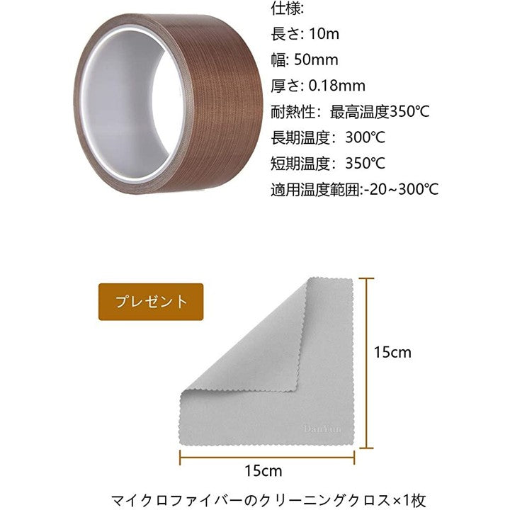 テフロンテープ 350°高温テープ 50mmx10m 高耐久性 PTFE クリーニングクロス付き