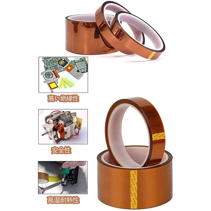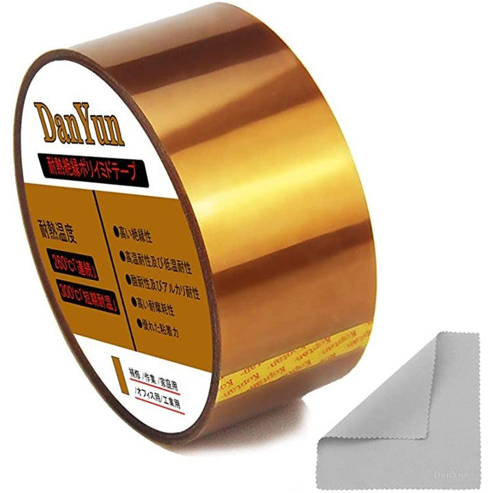 耐熱ポリイミドテープ 幅5cmx長さ33mx厚さ0.06mm カプトン粘着テープ 電気絶縁用テープ 高温テープ ポリミドテープ クリーニングクロス付き