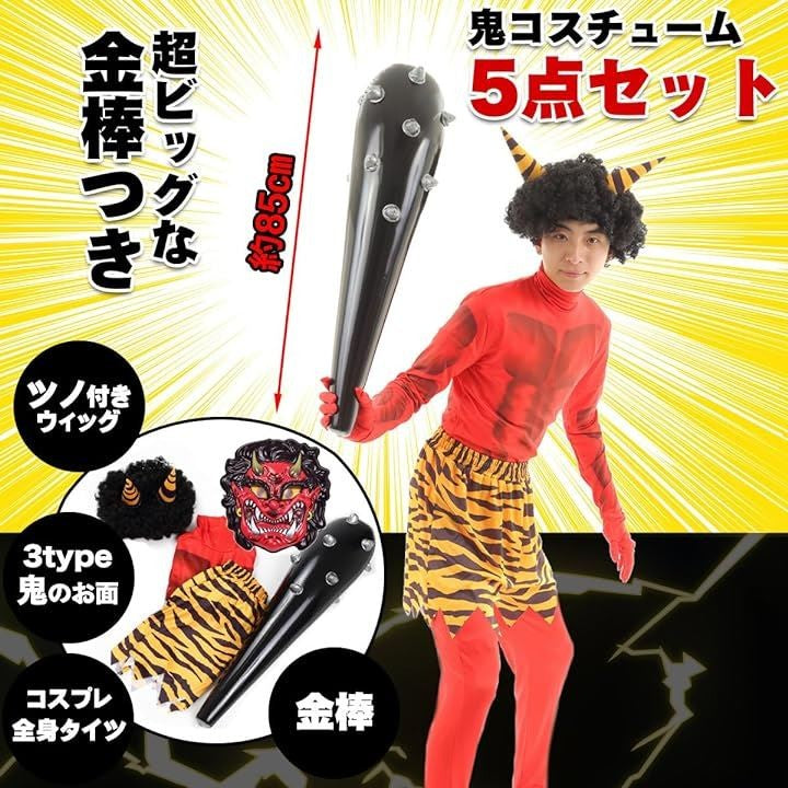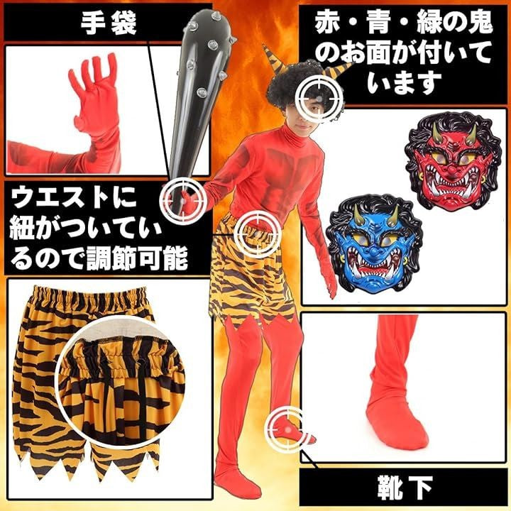 節分 リアル 3D 鬼仮面 豪華5点フルセット コスチューム 衣装