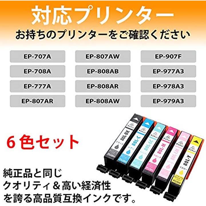 互換品 互換インク EPSON エプソン IC6CL80L カートリッジ 大容量 純正 と 併用可 とうもろこし EP-907F EP-977A3 EP-978A3 EP-979A3 EP-807AW EP-808AB EP-808AR