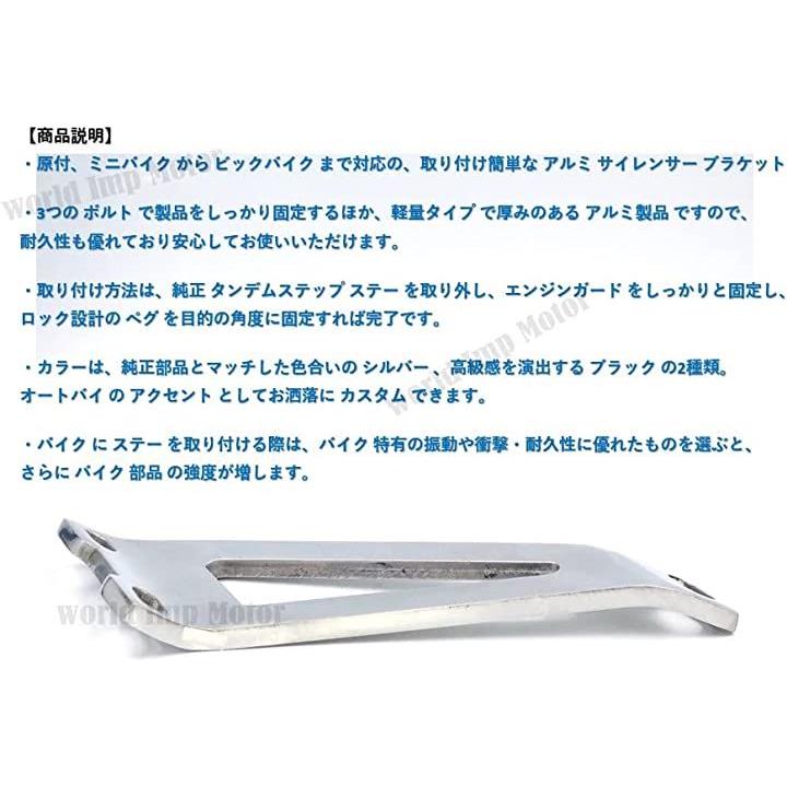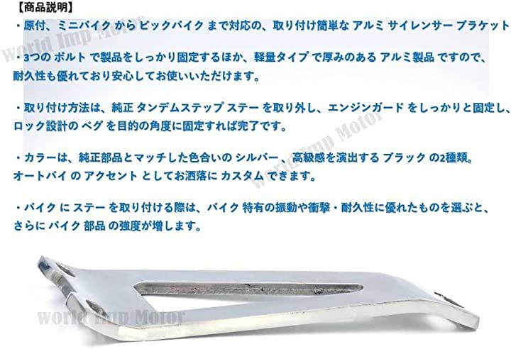 「商品説明」 ・原付、ミニバイク から ビックバイク まで対応の、取り付け簡単な アルミ サイレンサー ブラケット です。