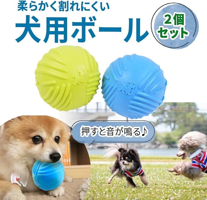 犬用ボール おもちゃ 玩具 噛むおもちゃ 音がなる 大型犬 中型犬 ペット 2個 セット