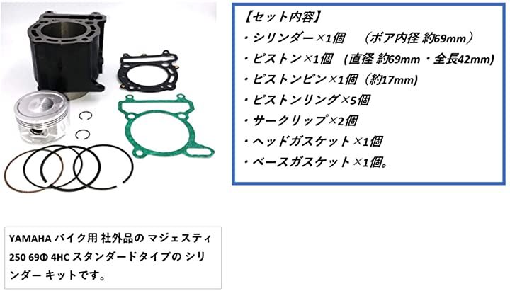 互換品ヤマハ バイク シリンダーキット マジェスティ250 SG03J 4HC 69mm 純正 タイプ 社外品 修理 交換 補修用に