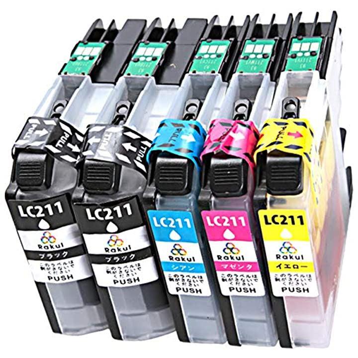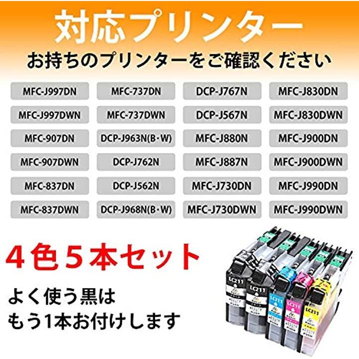 互換品 互換インク brother ブラザー LC211-4PK カートリッジ ICチップ残量表示 5本セット 4色+黒1本追加