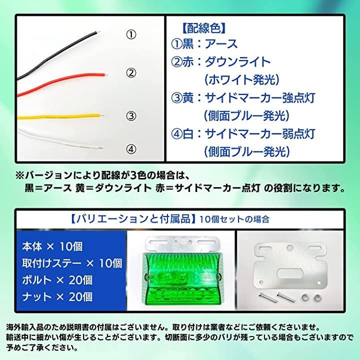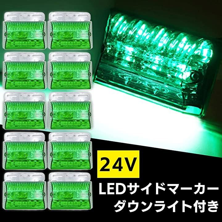 「互換品」Meliore 汎用 LED サイド マーカー 24V トラック デコトラ ダウン ライト ランプ 路肩灯 防水 テール アンダー セット ドレスアップ カスタム 大型 車 (グリーン10個) |