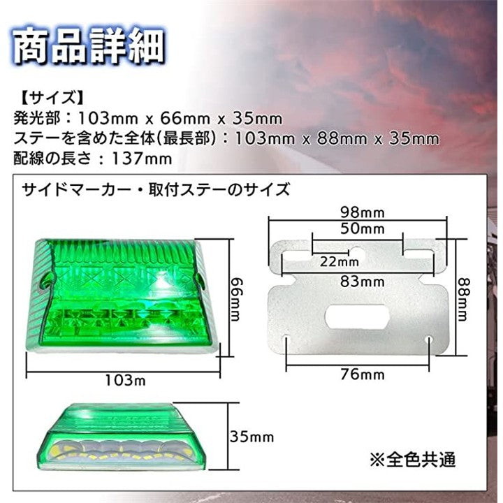 Meliore 汎用 LED サイド マーカー 24V トラック デコトラ ダウン ライト ランプ 路肩灯 防水 テール アンダー セット ドレスアップ カスタム 大型 車 (グリーン4個) |