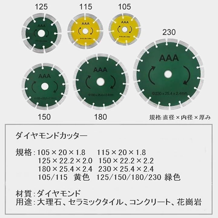 エックスジェー ダイヤモンドカッター 3枚セット ディスクグラインダー用 花崗岩 タイル 大理石