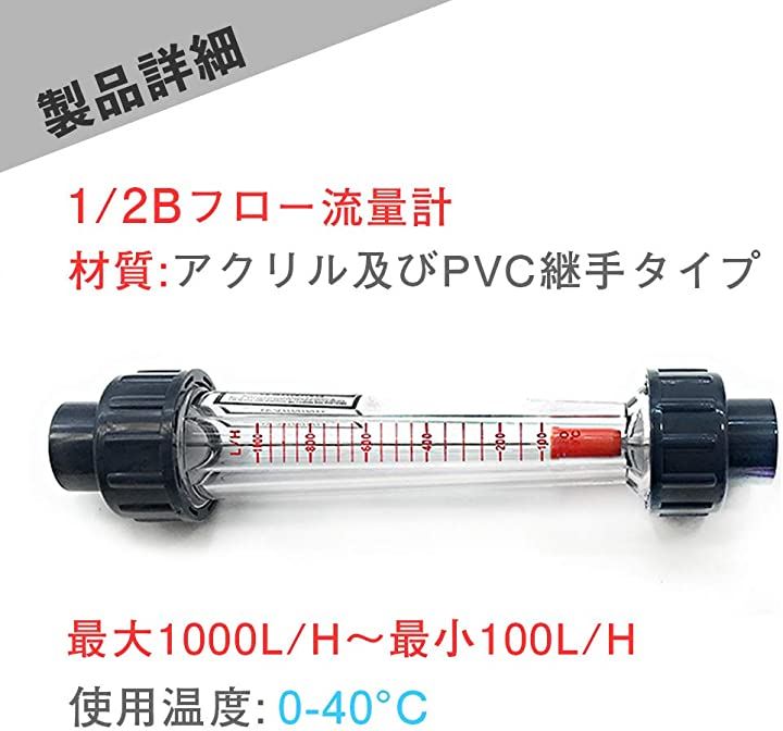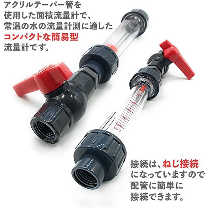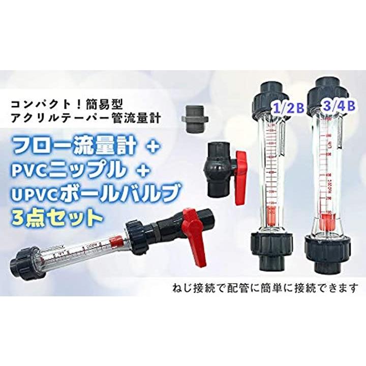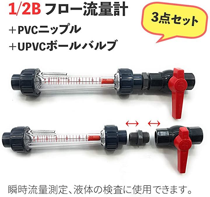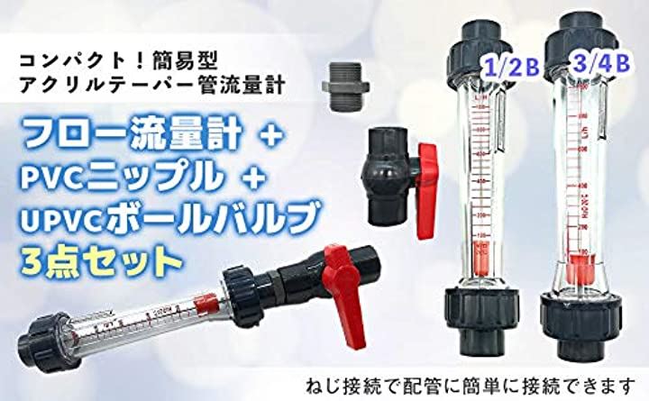 水 流量監視 フロー流量計 PVCニップル UPVCボールバルブ 3点セット 口径 ねじ