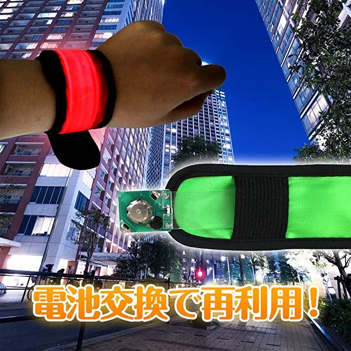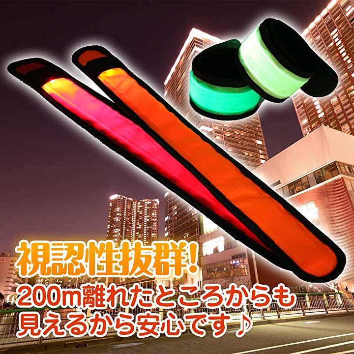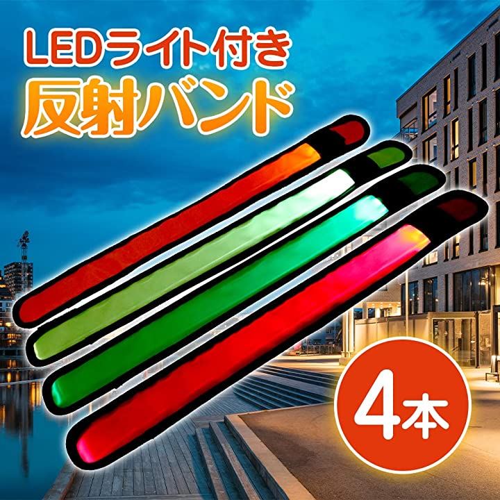The earth crew 暗闇で光る LED 反射バンド 4色セット 視認性 防犯 事故防止 夜間 ランニング ウォーキング 散歩 自転車