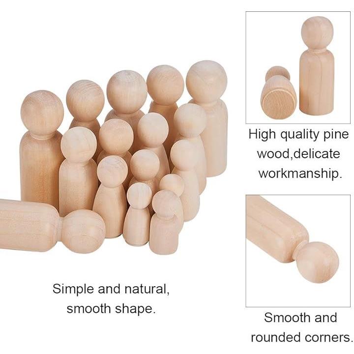 約48個セット 木製人形 未完のペグ人形体 人工的なウッド 人形装飾 男性と女性 芸術品や工芸品 手作り 素材 DIY用品
