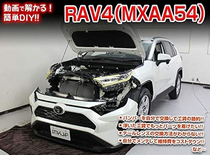 RAV4 50系 収録内容: 外装関連 01.ジャッキアップ&ダウン方法 02.エンジンオイル交換方法 03.フロントバンパー取り外し方法 04.リアバンパー取り外し方法 05.ヘッドライトユニット取り外し方法 06.テールライトユニット(ランプ類)取り外し方法 07.リアライトユニット取り外し方法 08.リアガーニッシュ取り外し方法 09.フロントウィンカーランプ取り外し方法 10.バックランプ取り外し方法 11.フロントホイールアーチトリム取り外し方法 12.サイドミラー取り外し方法 13.ホーン取り外し方法 14.ワイパー(ゴム・ブレード)取り外し方法 15.エアクリフィルター取り外し方法 16.ヒューズ取り外し方法 17.バッテリーマイナス端子絶縁方法 18.バッテリー取り外し方法 19.バッテリー上がり対処方法