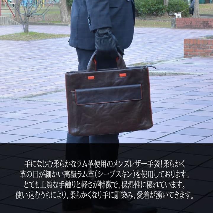スーツスタイルによく合い、手になじむ柔らかなラム革使用の男性用レザー手袋。 柔らかく革の目が細かい高級ラム革(シープスキン)を使用しております。