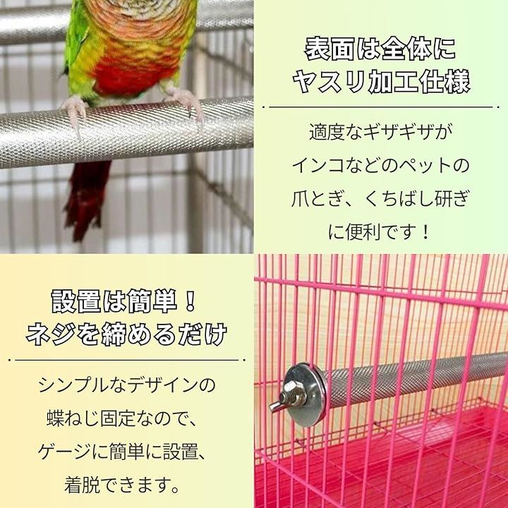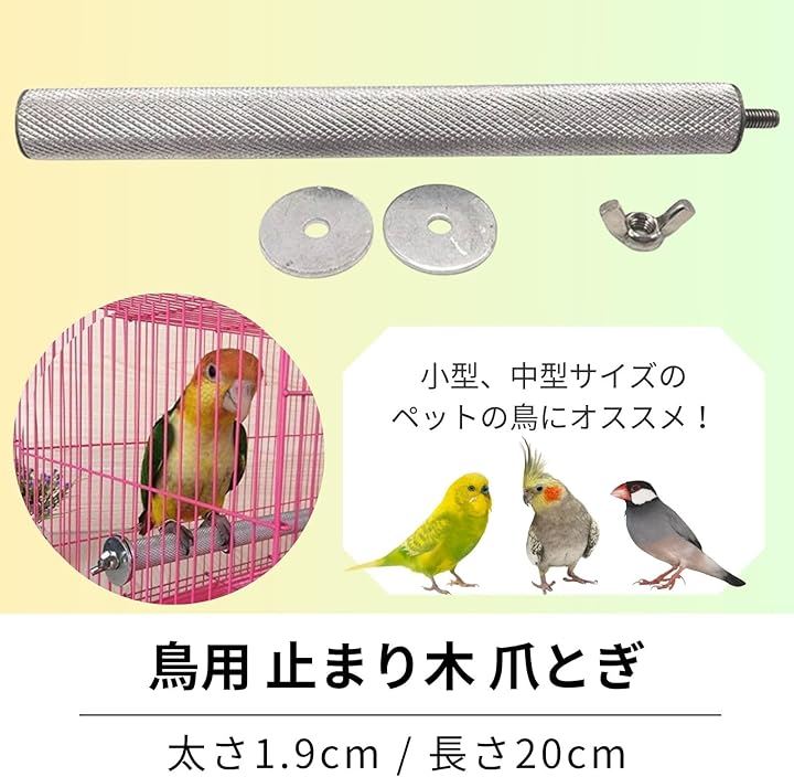 鳥用 止まり木 爪とぎ やすり インコ 文鳥 オウム くちばし ステンレス製 洗える 清潔 衛生的 太さ1.9cm