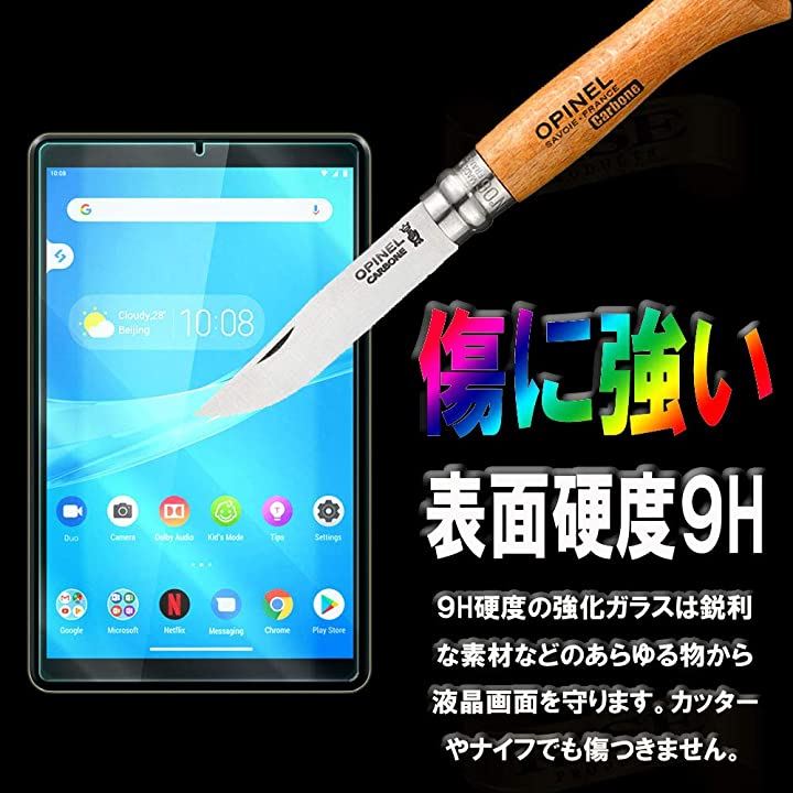 「傷に強い 表面硬度9H」9H硬度の強化ガラスは鋭利な素材などのあらゆるものから液晶画面を守ります。