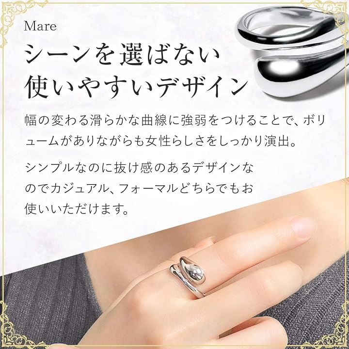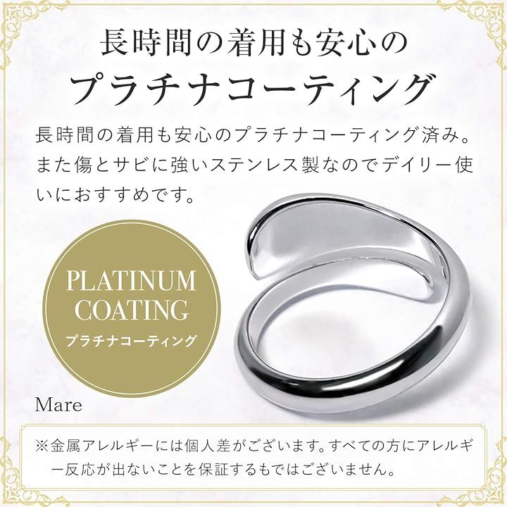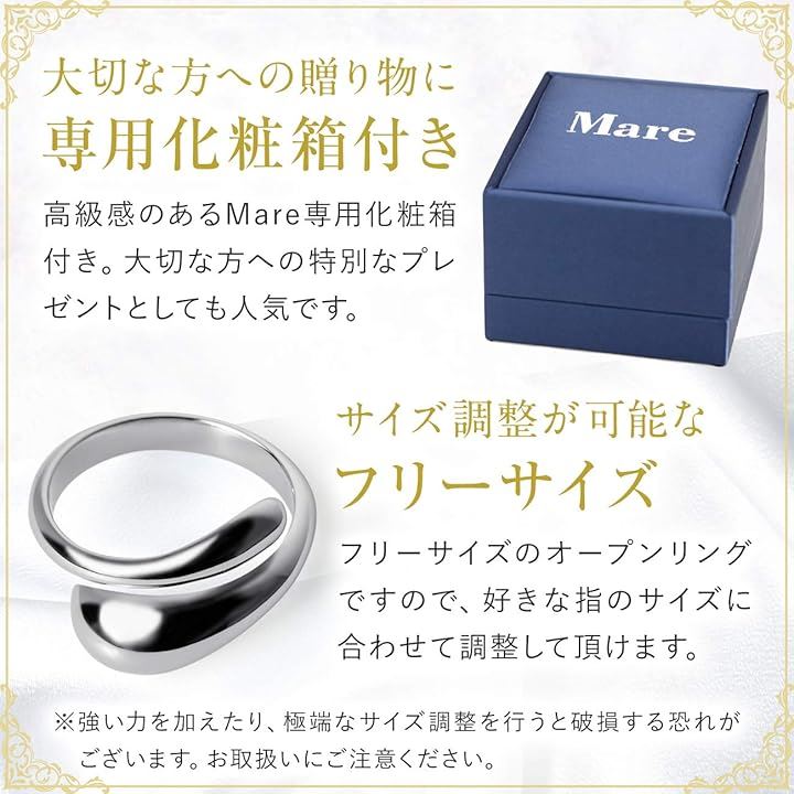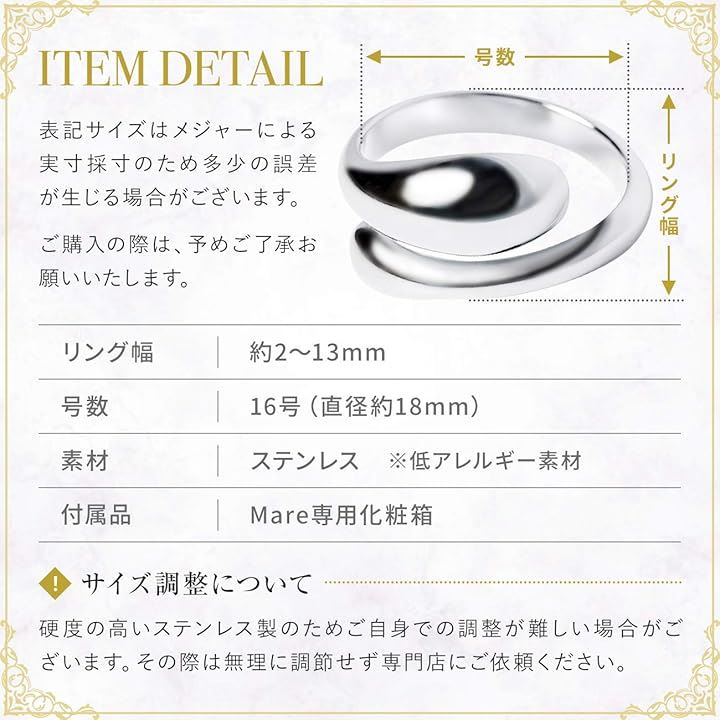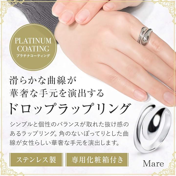 Mare マーレ リング レディース ホワイトゴールド フリーサイズ ステンレス 指輪 ファランジリング ラップリング プレゼント ファッション アクセサリー ギフトBOX付き シルバー