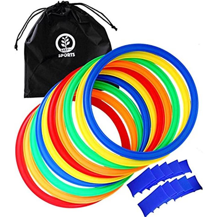 BABY tree ケンケンパ リング フラット フープ リトミック ケンケンパリング トレーニング 収納袋付き (カラフル, 38cmx20本セット) |
